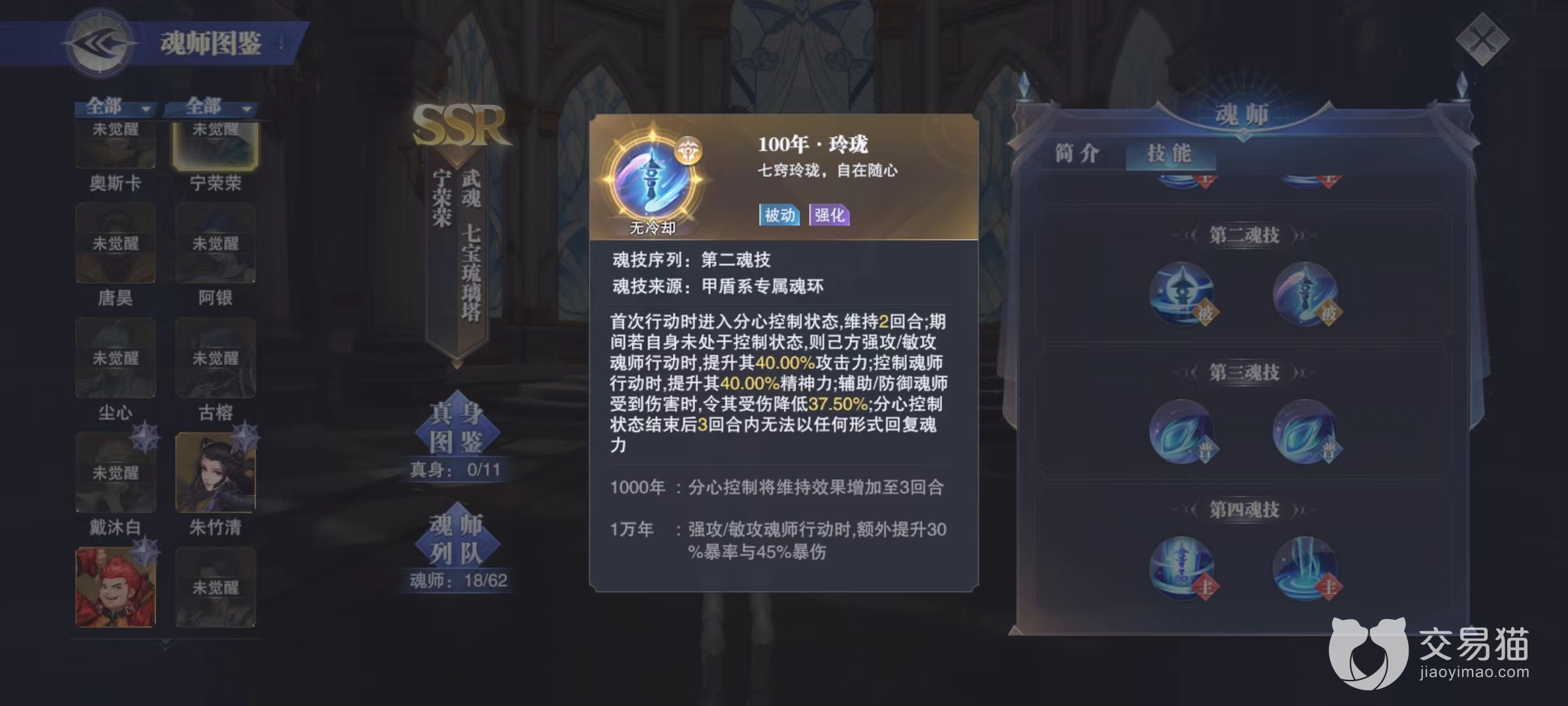 第2个选择的是宁荣荣,同样为强力辅助系魂师,但是和阿银不同,她更加擅长于添加各种状态和加血。尤其是第二魂技玲珑,能够为己方的强攻系魂师和敏攻系魂师提升高额的攻击力加成。第四魂技七宝之攻可以让队友立即获得一回合的行动能力,并且附加无敌神光提升攻击力。这就相当于唐昊在出手一次之后,立即又获得了一次出手机会让对方防不胜防。