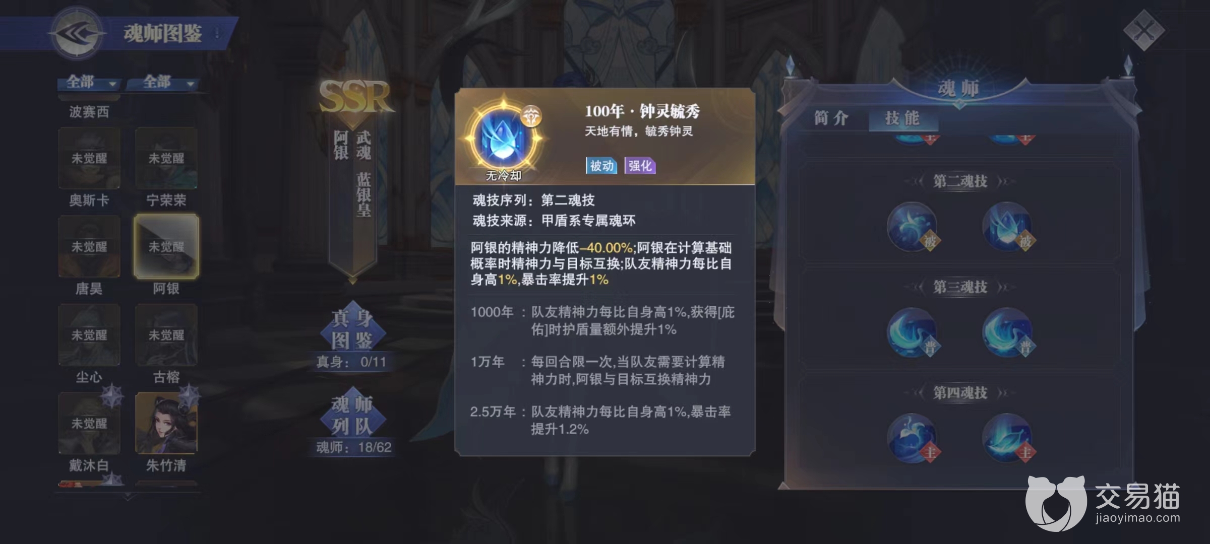 唐昊的最佳伙伴就是阿银,阿银作为一名辅助系魂师,魂技可以为队友施加护盾效果和提高暴击以及攻击伤害,无论是选择哪一种都能够为唐昊带来极大的提升。尤其是第二魂技的被动效果钟灵毓秀,通过降低阿银的精神力,然后和队友进行精神力对比计算,如果队友的精神力高那么可以提高暴击率,相信大家都体验过高暴击的唐昊是如何恐怖,直接可以将对面锤爆。