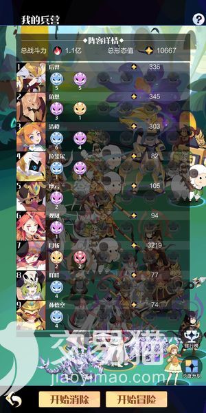 例外给大家分享一个小技巧,前面让大家记住的沙盘,现在可以利用这个特性去提高一下步数,激活一下底层的技能效果。在没有地方能消的时候,玩家就可以使用一下技能打乱一下这个棋盘,就不用头疼啦。