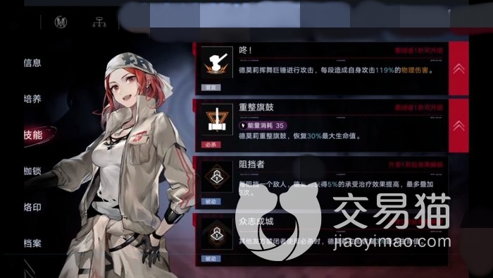 首先玩家可以在如图所示的地方兑换印记开出相应的能力,比较考验玩家的运气,平民玩家资源有限谨慎选取最为重要。然后该角色为什么是坦克呢,这跟她的技能息息相关,加上专属的烙印可以阻挡四个敌人,技能效果是每有一个敌人就能给她增加坦度血量提升惊人,自带治疗不受减防敌人的干扰。