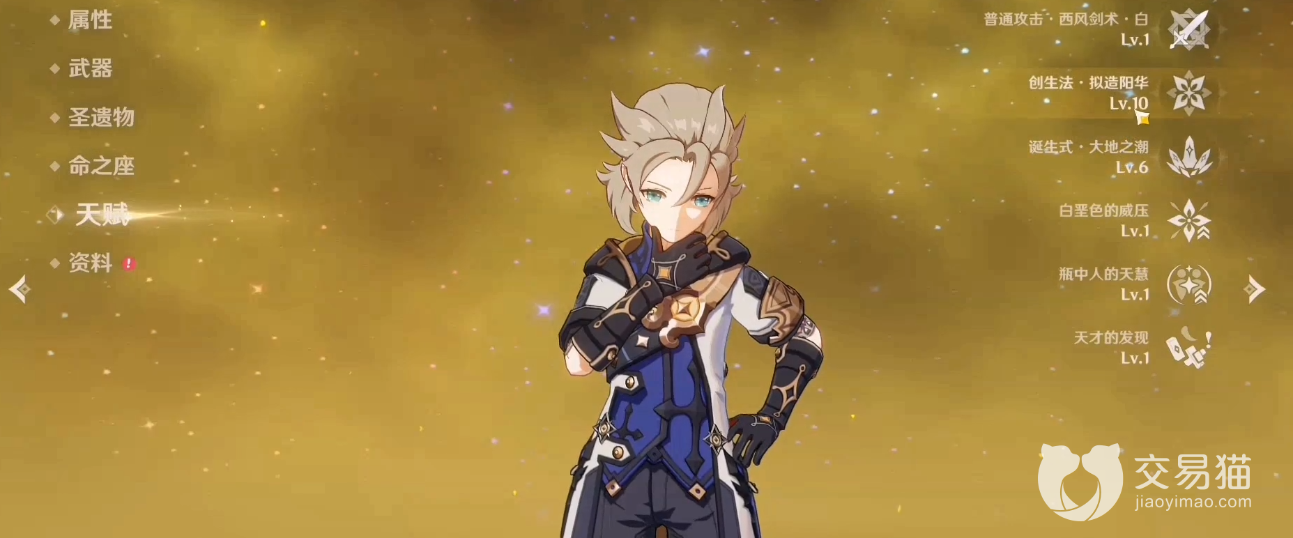 先说明他的技能和强度吧,作为岩系的副c,他的伤害类型以防御力为主,大多的输出手段是他的拟造阳华。他的主要攻击方式是每两秒可以对范围中的敌人造成一次岩属性伤害,总的持续时间是30秒。释放元素爆发时,还可以增加附近角色的元素精通。
