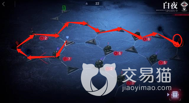 4、最后一步:最后阶段是,玩家沿着红箭头从上方走到出口就能过关了,这个时候还有2行动值。