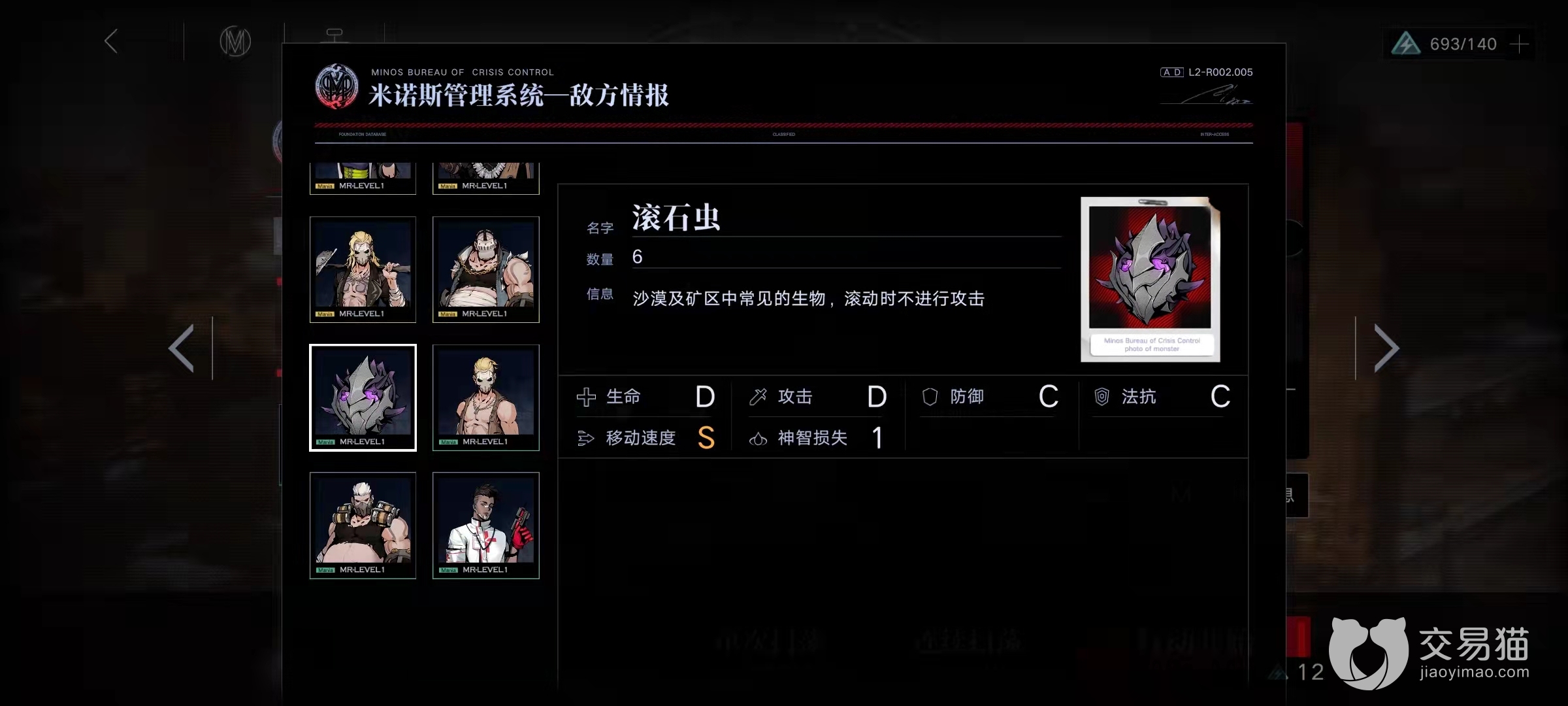 滚石虫,这种敌人不会进行攻击,也很好击败,但是它们的移动速度很快,有时候和其他敌人一起进攻就会漏过大队伍直冲局长处,这关中会出现数量较多的滚石虫,要处理它们的话要带上有群攻能力的禁闭者。