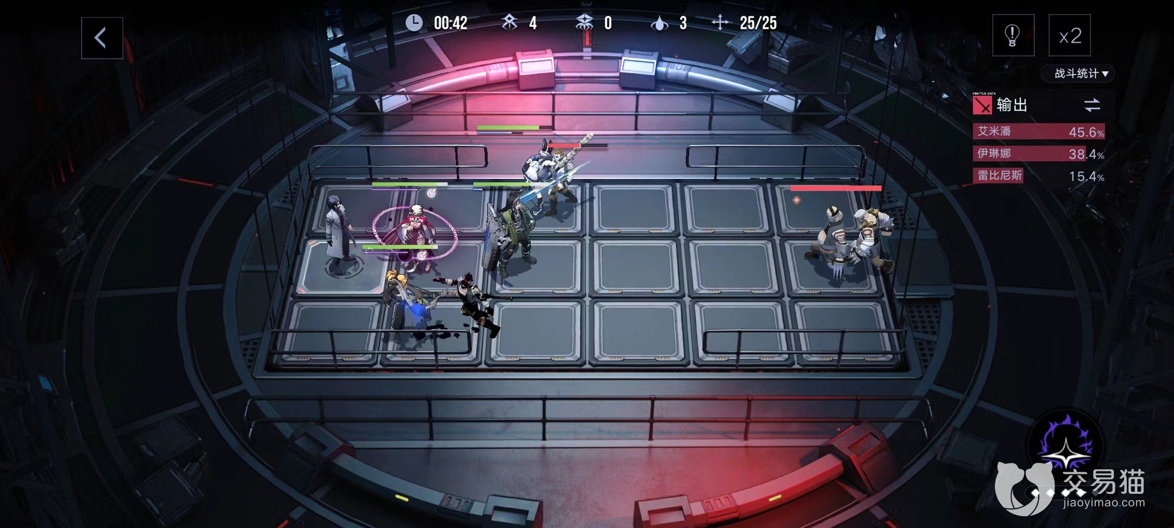 上图是小编这里的角色选取,艾米潘和伊琳娜都有破核能力,艾米潘射程远,可以对付这一关射程远的敌人蝙蝠,伊琳娜有一定的群攻能力,可以避免敌人的堆积,剩下的角色最好是一个选择挡二的坚韧禁闭者,另一个最好是诡秘或是狂暴禁闭者,这样既可以挡住敌人,又可以输出,一举两得。