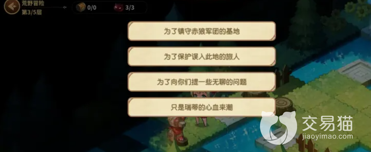就比如说,第一关,玩家可以在经历的小怪的洗礼,来到神像面前,就会有问题来到玩家面前。第一个选择是选骨头,第二个是选问题进行解答,两个完成后都可以开下张图的传送。当然选骨头的前题是有骨头,不然还是答题吧。