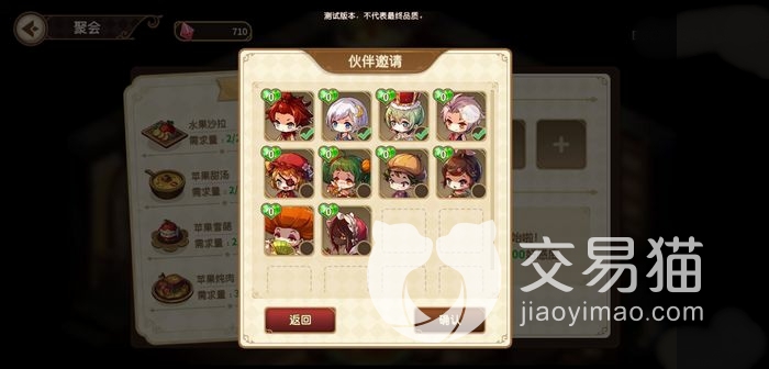 最后食物制作完全就可开派对了,邀请想要的角色来享用你的食物,注意需要准备要求的食物才可以邀请,一次可以邀请很多的角色来刷取好感度。