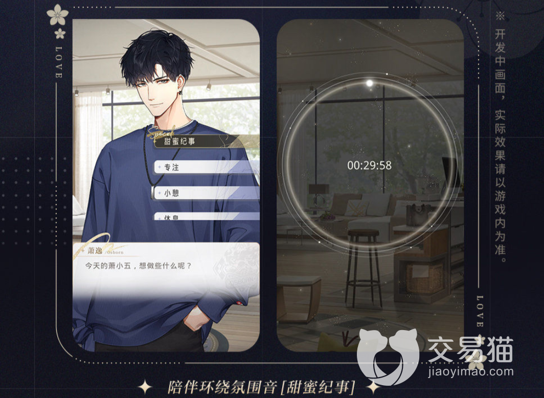 运气不好的玩家在最多抽取到八十四次的时候就能集齐全部的大奖,其中除了灵犀之外还有情头和氛围音可以获取。在获取到这里的灵犀之后就能体验特定的语音约会剧情了,解锁约会中的所有互动以后,还会开启新的界面体验,能够倾听主角对你的甜言蜜语。