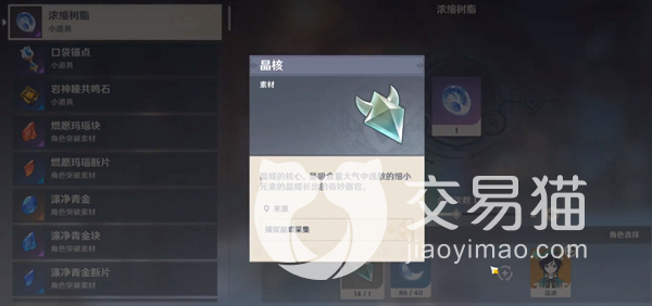晶核是晶蝶的核心,其实就是体内的一个器官,就是依靠这个器官,晶蝶才能够听过吸食元素而存活下去。在制作浓缩树脂、耐寒药剂、防风药剂这三个道具的时候需要使用到晶核。