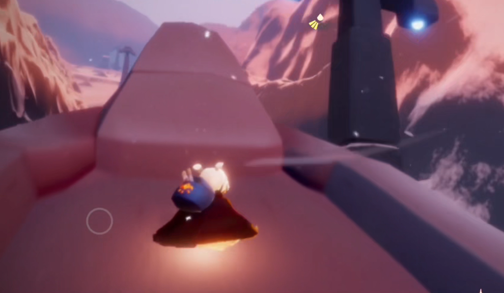 在离日落比较近的区域,各位就会发现一大堆云层,继续朝着太阳的方向追赶即可。此时,在如果能量不足的话,大家记得及时进入到云层当中补充能量,这样就能够让玩家们可以最快的速度抵达目标地点。当玩家们离太阳越来越近的时候,就可以直接发现前方耸立着一座小型山峰。