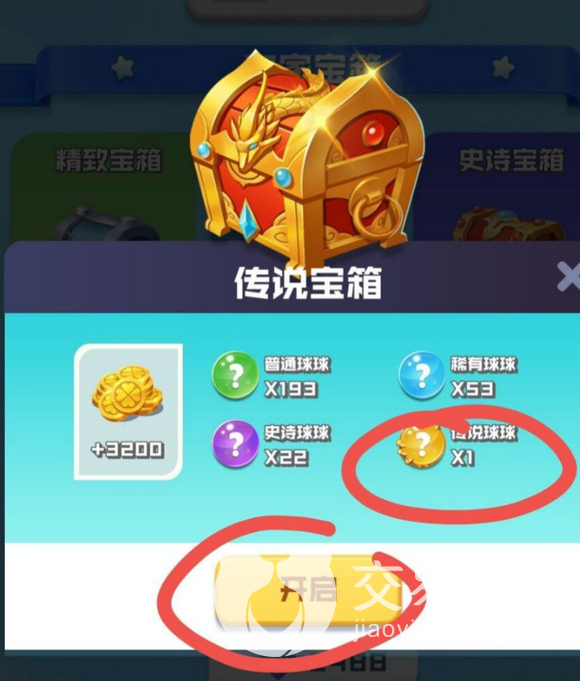 这个传说宝箱是有几率出传说球球的,而传说球球更是有几率开启光棱球球,这是一个看脸的宝箱。
