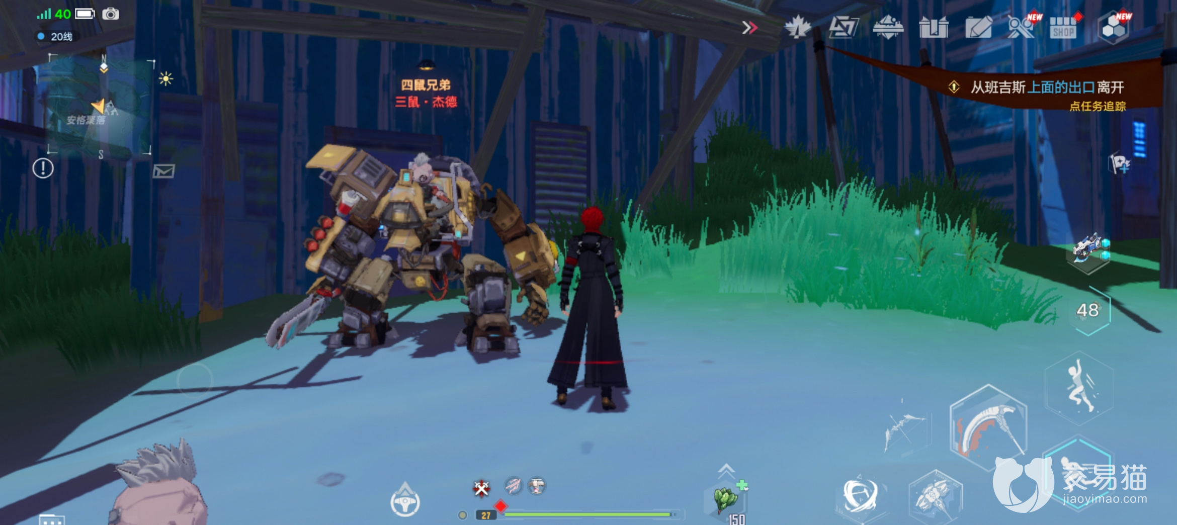三鼠在安格聚落这里的营地里,玩家跑过来之后沿着营地走就能看到它了。