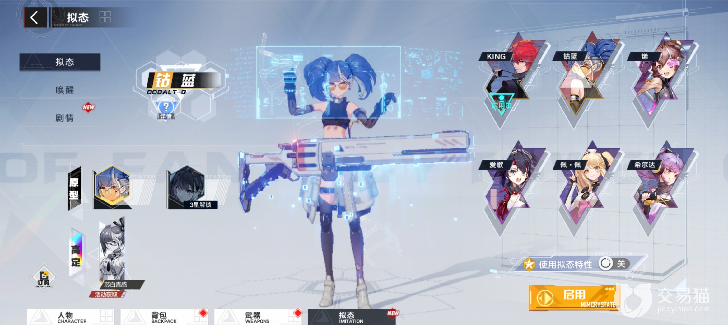 当然,除了外型展示之外,还有辅助增加效果。只是初级拟态是没有加成的,提升拟态的唤醒值之后就会有额外的加成,SSR品级的加成会比SR品级更高一点。而且唤醒值越高,拟态和角色的亲密度也越高,其拟态的故事背景也越详细。