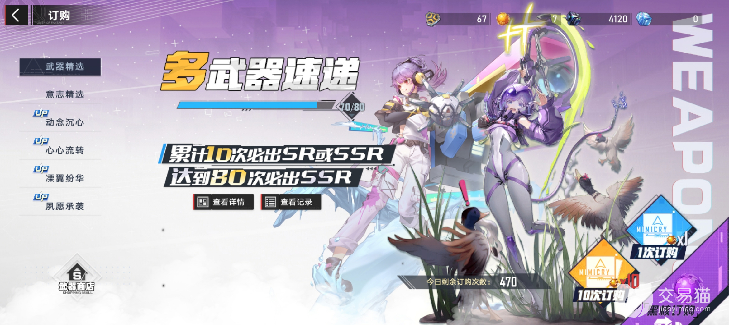 在做主线任务时,玩家可以获得包括爱歌、白伶等拟态,想要其他拟态,可以通过订购获得,不能单独购买拟态。只要第一次获得SR或者SSR品级武器就能解锁新的拟态,目前游戏内已经有27款拟态,其技能和形态都不太一样。订购所需的金核和黑核可以通过任务和探索获得。