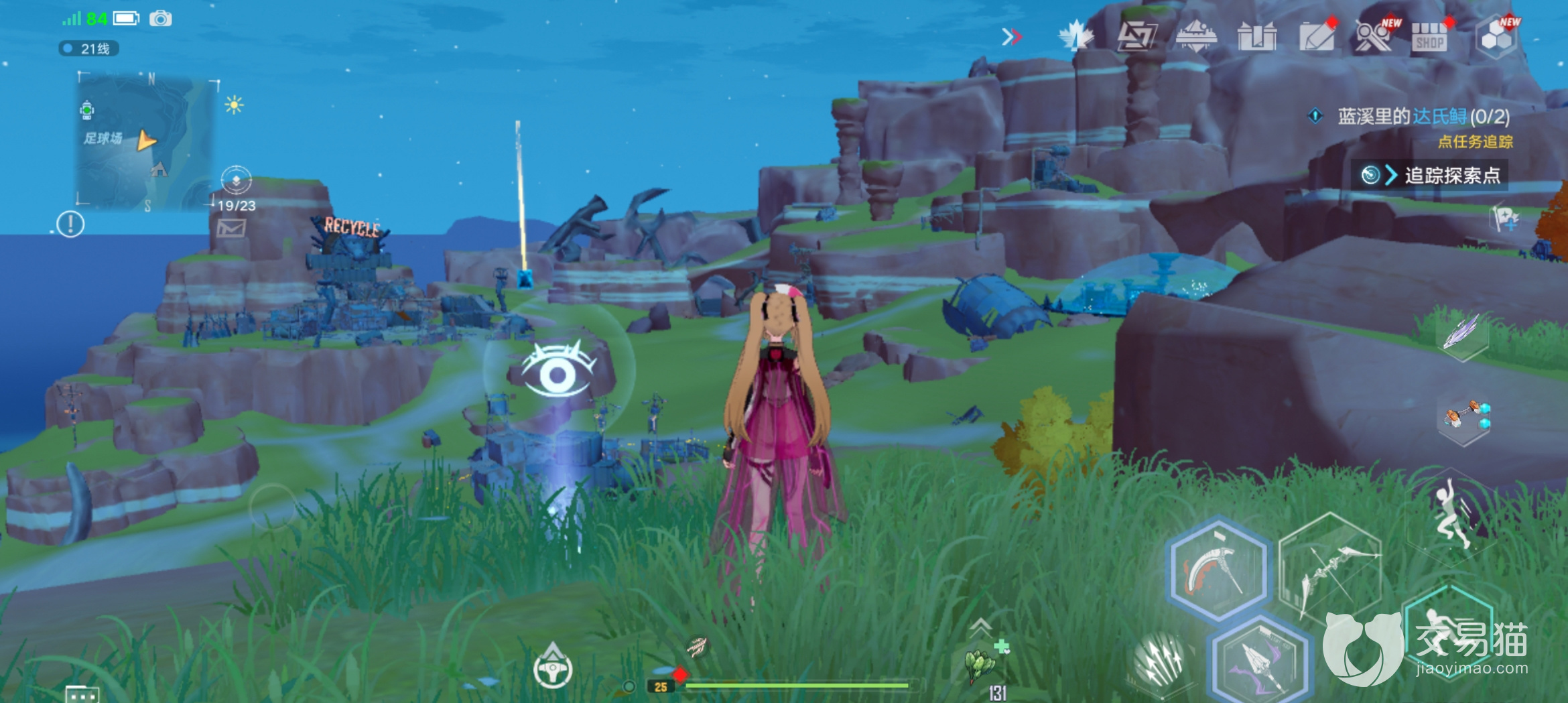 我们先认识一下风景点的标识,距离风景点位置较近时会有一个眼睛标识的,点击“调查“就完成打卡,下次逛地图时看到这些小眼睛记得打卡。下面我们具体说一下星岛的风景点。