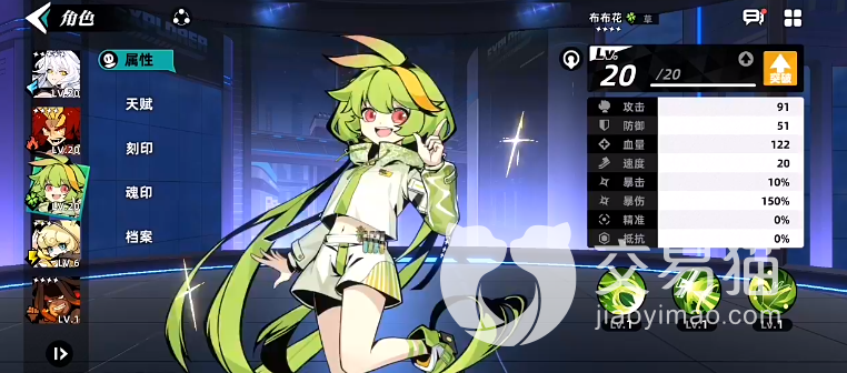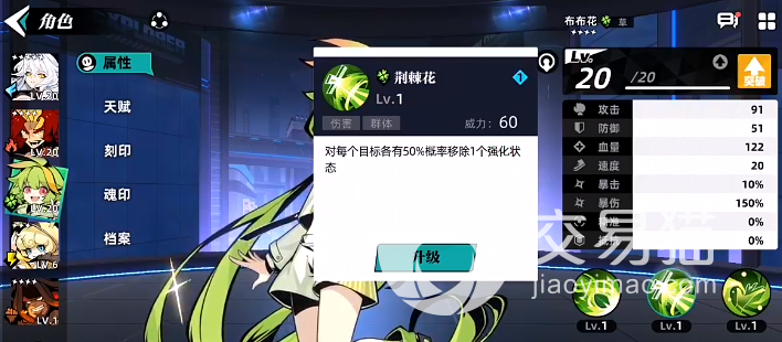 想了解布布花这个角色,我们需要了解其属性、天赋,它一共有三个技能,一技能为寄生,种子释放的时候有60%的概率可以向目标敌人附加一回合的寄生状态,属于单体伤害。二技能为荆棘花,属于群体伤害,威力为60,在释放的时候可以对每一个目标有50%的概率造成移除一个强化状态。