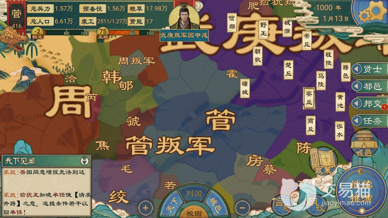 该游戏有着非常高的上手难度,不过对于喜欢策略游戏的玩家来说还是值得一玩的,毕竟有着非常多的玩法,下面小编就来告诉大家大周列国志稳定度怎么提升。如果还不知道稳定度怎么提示的话,那么就一定要紧跟小编的步伐哦。别看稳定一次减的不多,后期很可能就会因为这个无法获得胜利。