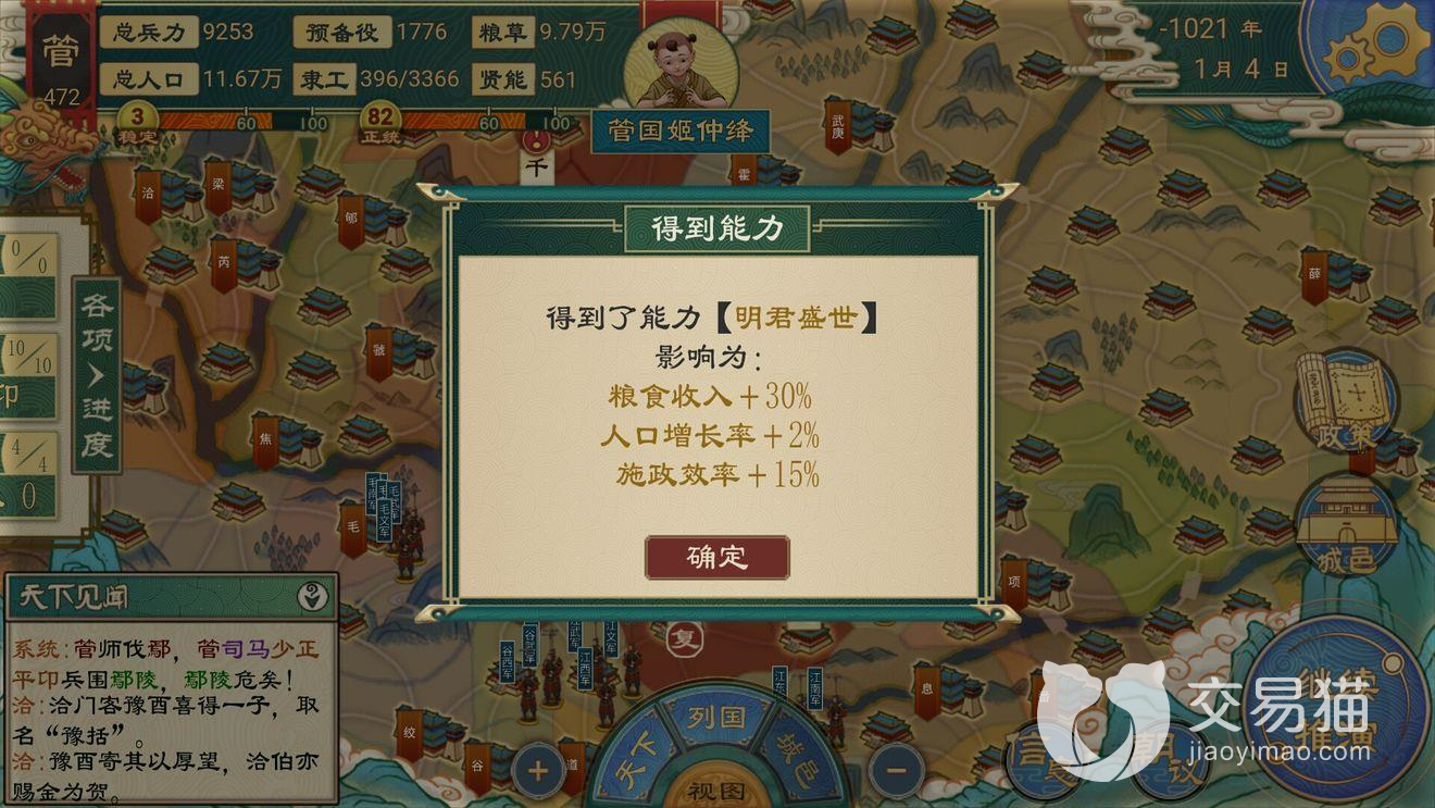 3、如果稳定达到了三君主,那么还能解锁特殊能力。