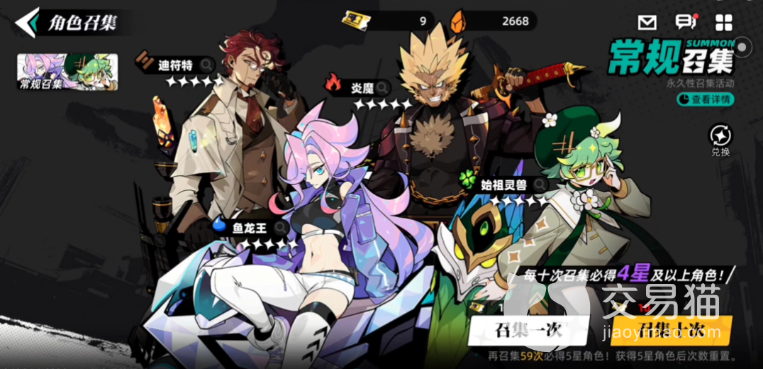 在测试阶段的游戏里,能够获取的道具都方便,商店中一些道具的价格也会相对便宜一些。在这个召集玩法中,能够获取到的基本都是角色,里面的角色自然是有级别差距的,其中五颗星的最不好获取了,但它的保底抽取次数为六十次。
