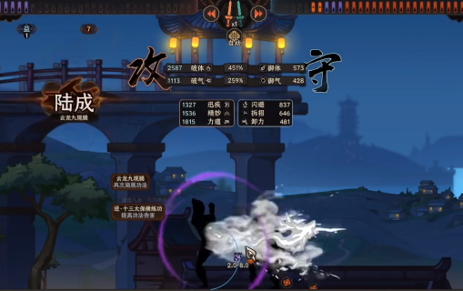 云山派功法现在最主要靠云龙九现腿,相信大家都懂,这个构筑一般在九阶的时候就能成型,玩家需要的关键绝技都是九阶和八阶的挂件。这里主要有吐浊纳清法(逆),十三太保横练功(逆),转圆法(逆),盛神法(逆)等。整体的思路是七手八脚弓吃满buff的御风符,三个大提升施展速度。这样的话云龙九现腿打的比平A还快,一步一脚秒读条,并且威力也高,在踢完腿之后,玩家可以开防御技能。