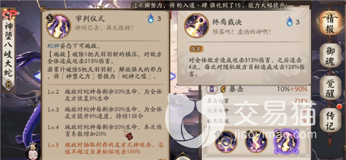 看完这些分析以后,相信各位小伙伴们大概能清楚阴阳师sp八岐大蛇怎么样了,总的来说他是一个很强的式神,大家如果抽到他的话,可以放心的培养,尤其是喜欢pve模式玩法的小伙伴们,一定不要错过这个神作式神。