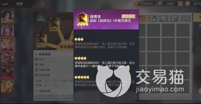 首先要知道不同的秘卷拥有不同的效果,平民最优的套装流派就是极限流派的套装四件可以触发套装的免伤效果,可以减免对方的伤害可以说是简单又好配的。