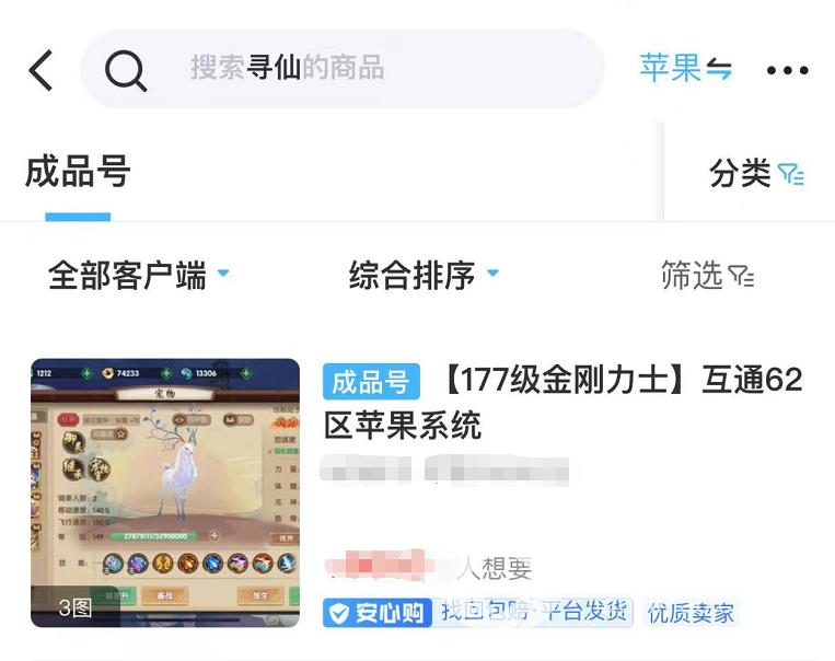 三、像寻仙这款游戏,有着道具以及金币等交易服务,不论是大力金刚还是幽冥符咒,这些都是只要搜索,就可以找到,同时涵盖了市面上绝大部分的热门手游,所以只需要搜索对应的游戏名,大家就可购买到自己需要的道具。