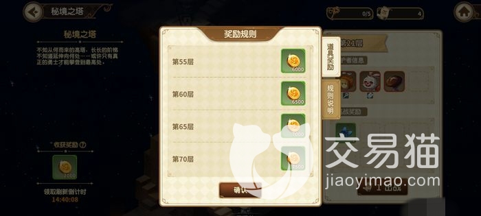 其次就是“秘境之塔”了,随着爬升的塔越高能够获取金币的量就越大,但是每天只能挑战五次导致玩家前期是指望不上这个奖励的内容的,而且要拿全奖励就需要很多强的队伍爬到最高的塔顶了。