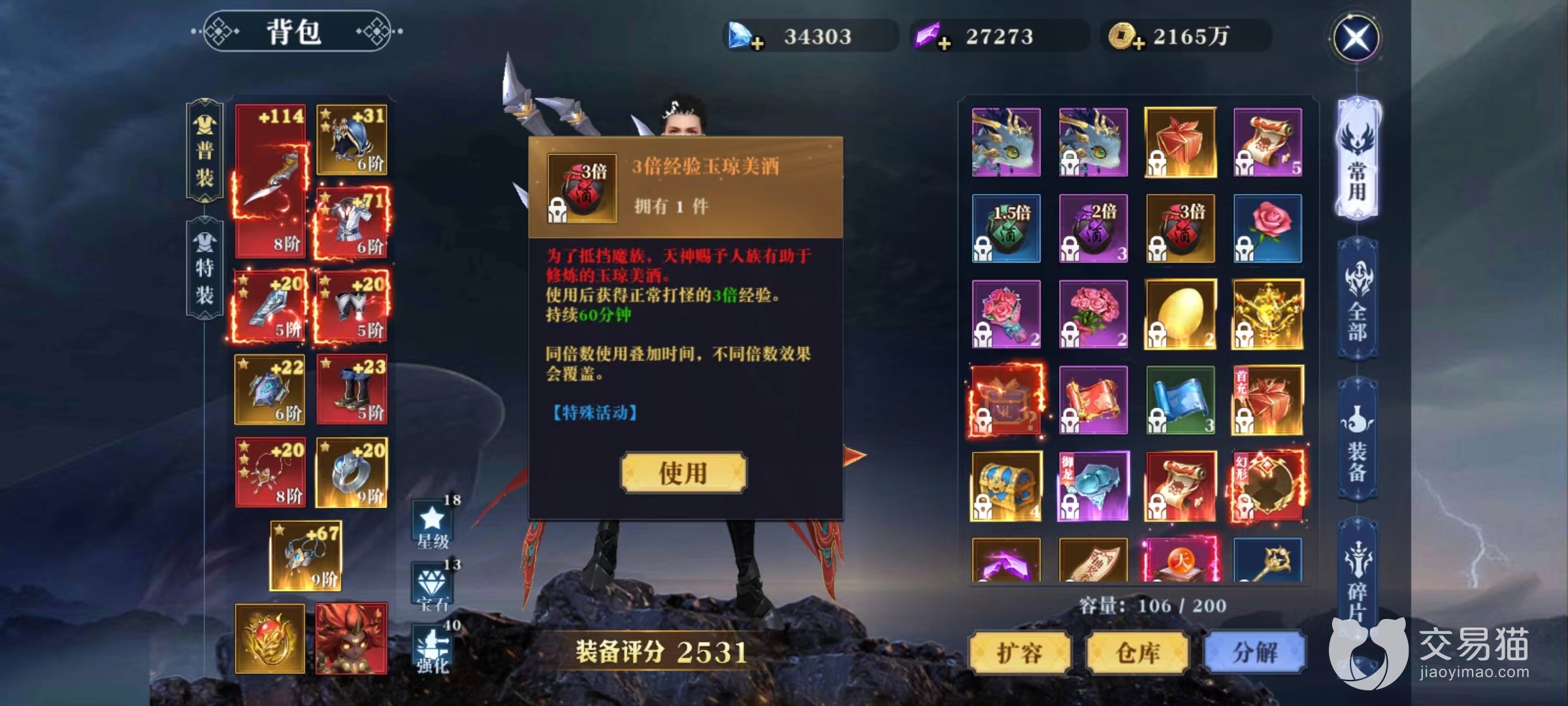 最后是一样道具很关键,那就是能够提高打怪经验的各种美酒,分为1.5倍,两倍和三倍,喝下一瓶酒可以在60分钟的时间内获得经验加成。使用多坛美酒可以叠加时间,在晚上挂机前多喝下几坛,第二天等级会非常惊喜。