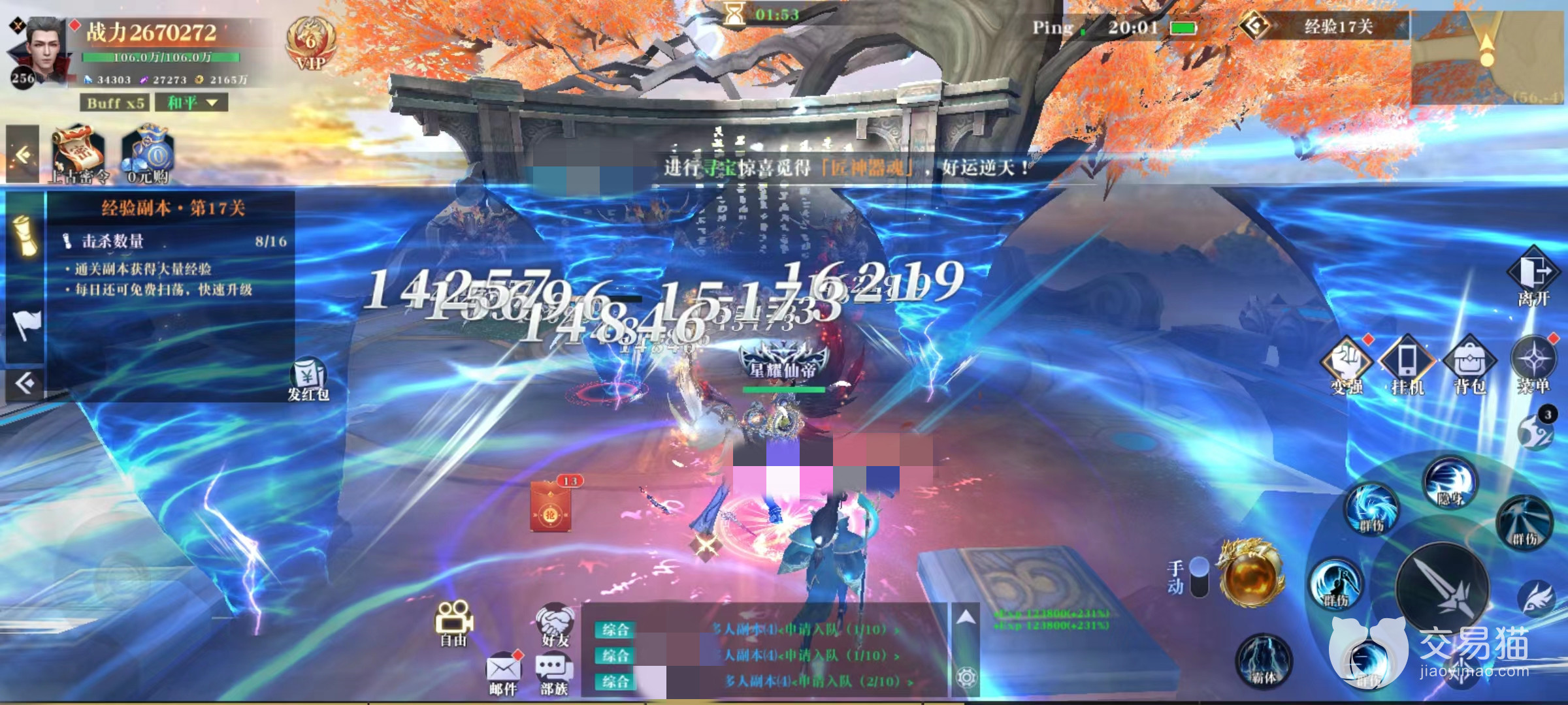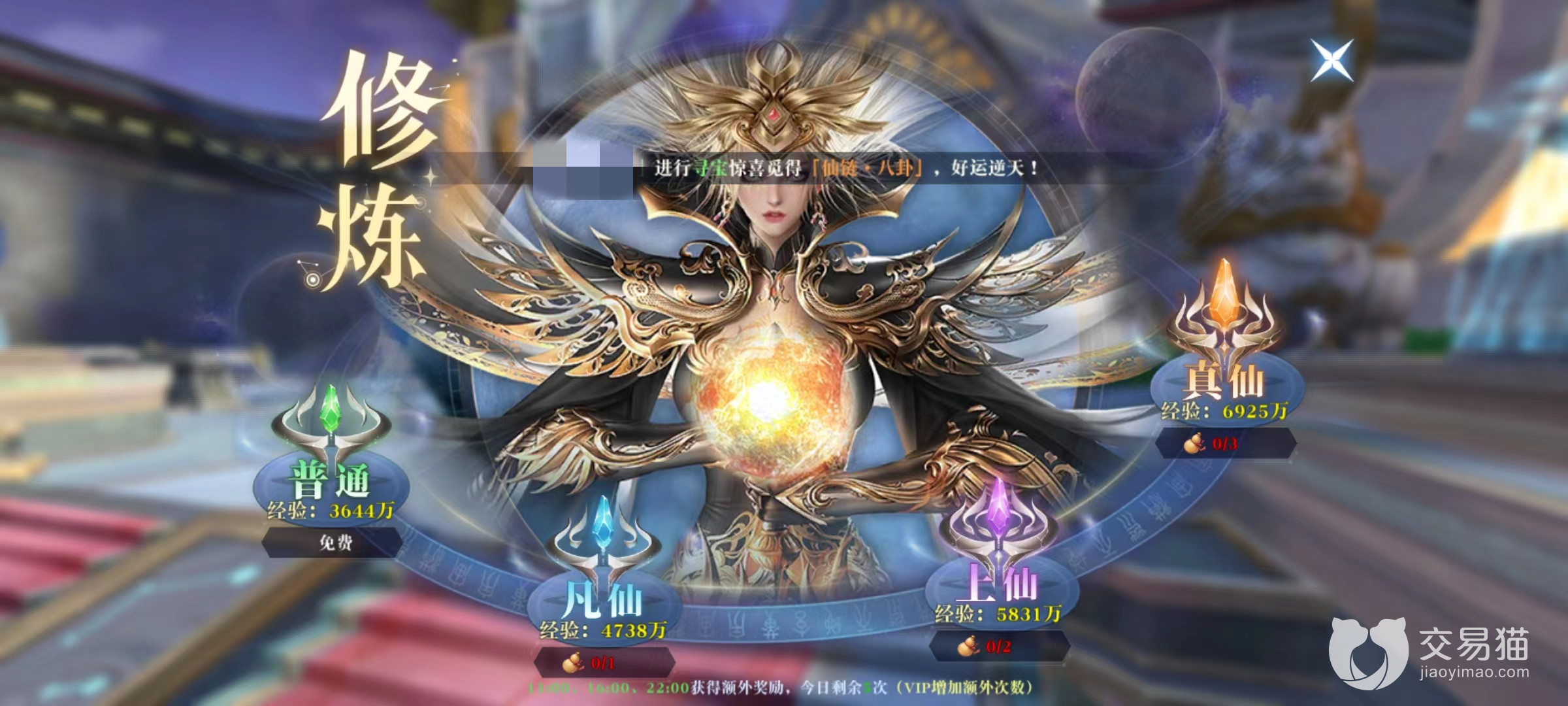 第4个活动是传功,类似于直接花费资源购买经验的玩法,分为普通、凡仙、上仙和真仙。真仙每次获取的经验值大约是普通两倍,需要消耗对应道具,或是直接选择玄晶进行修炼。而且在指定时间进行修炼还会获得双倍收益,这个活动一定要等到双倍时间来进行,额外奖励非常可观。
