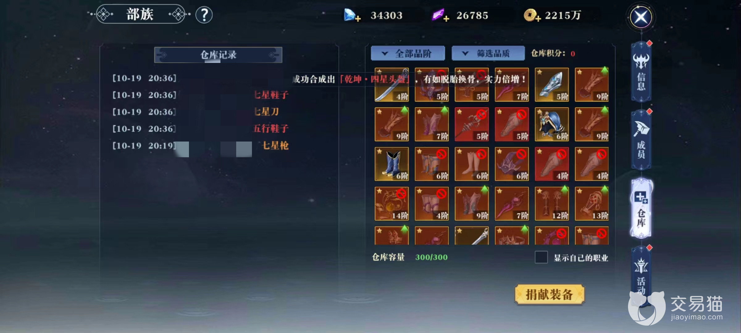 第3项福利是在部族中可以抢红包,不同于世界频道中发出的红包,这里只能由同一族的成员才能够抢到,无论是数量还是质量都要比外面好很多。第4项是仓库兑换,这里是装备交换的场所,自己用不到的极品装备通过捐献到仓库里可以获得积分,同样使用积分可以兑换到自己需要的装备。能够加入一个强大的部族可以获得很多极品装备,在所有福利中这是最划算的一个。