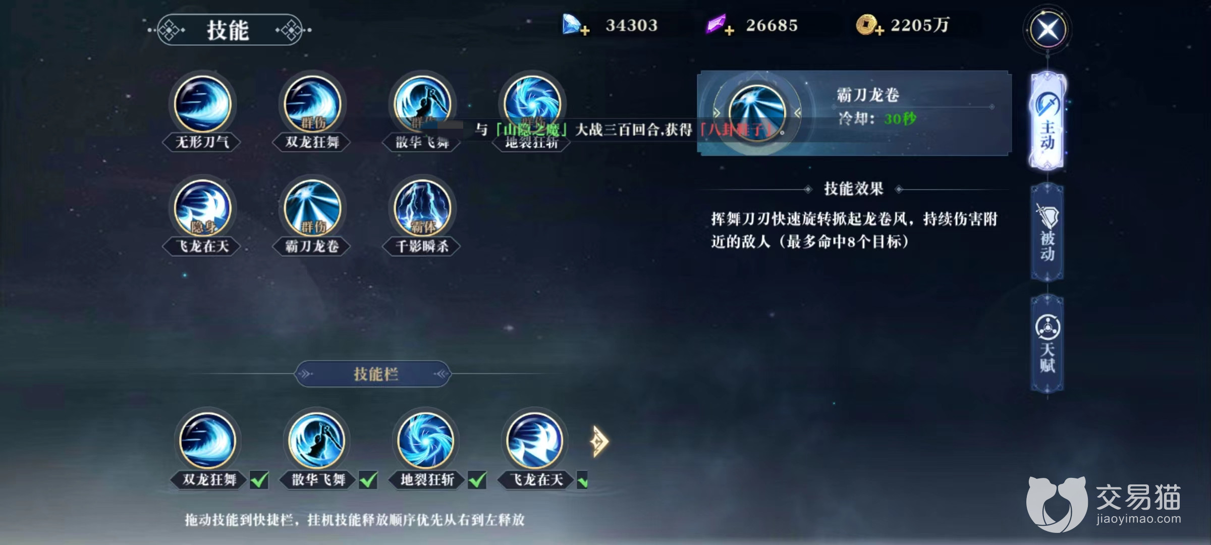 最后一个可以选择散华飞舞,这是一个伤害加位移,向前方旋转移动时可以造成持续伤害,虽然速度不快但确实是一个能够走位的技能。接下来只需要在被动技能中集齐能够增加暴击伤害的白虎之力和在PVP时提高伤害的玄武之力,就可以轻松战胜对手了。