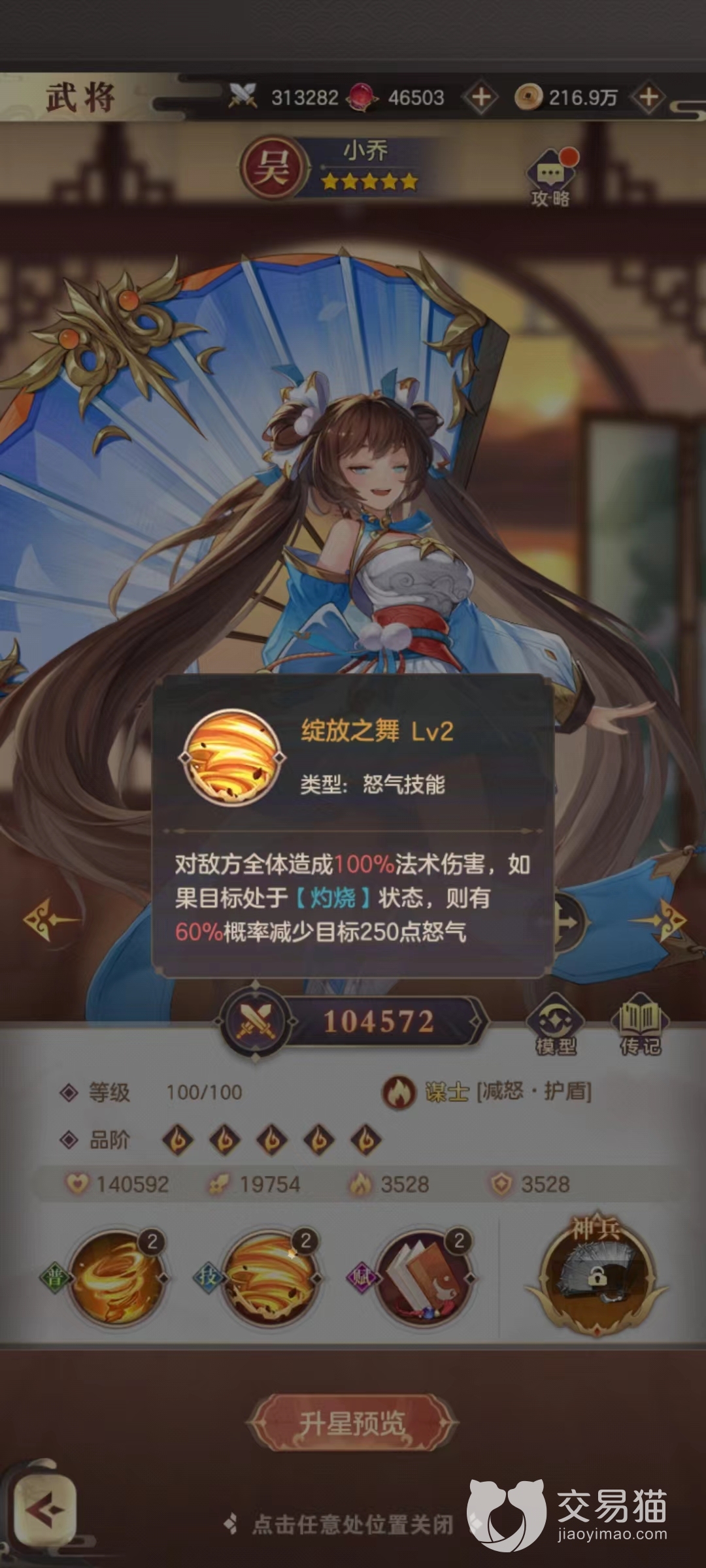小乔的普攻可以伤害敌方动态,并且有几率将目标身上的增益状态驱散,使用技能后对敌方全体造成伤害,如果处于灼烧状态还可以额外降低怒气。在周瑜输出后对方肯定会有被灼烧的目标,此时小桥接上能够打掉敌人技能,提高我方生存能力,在没有治疗的阵容里,这也是非常重要的一环。