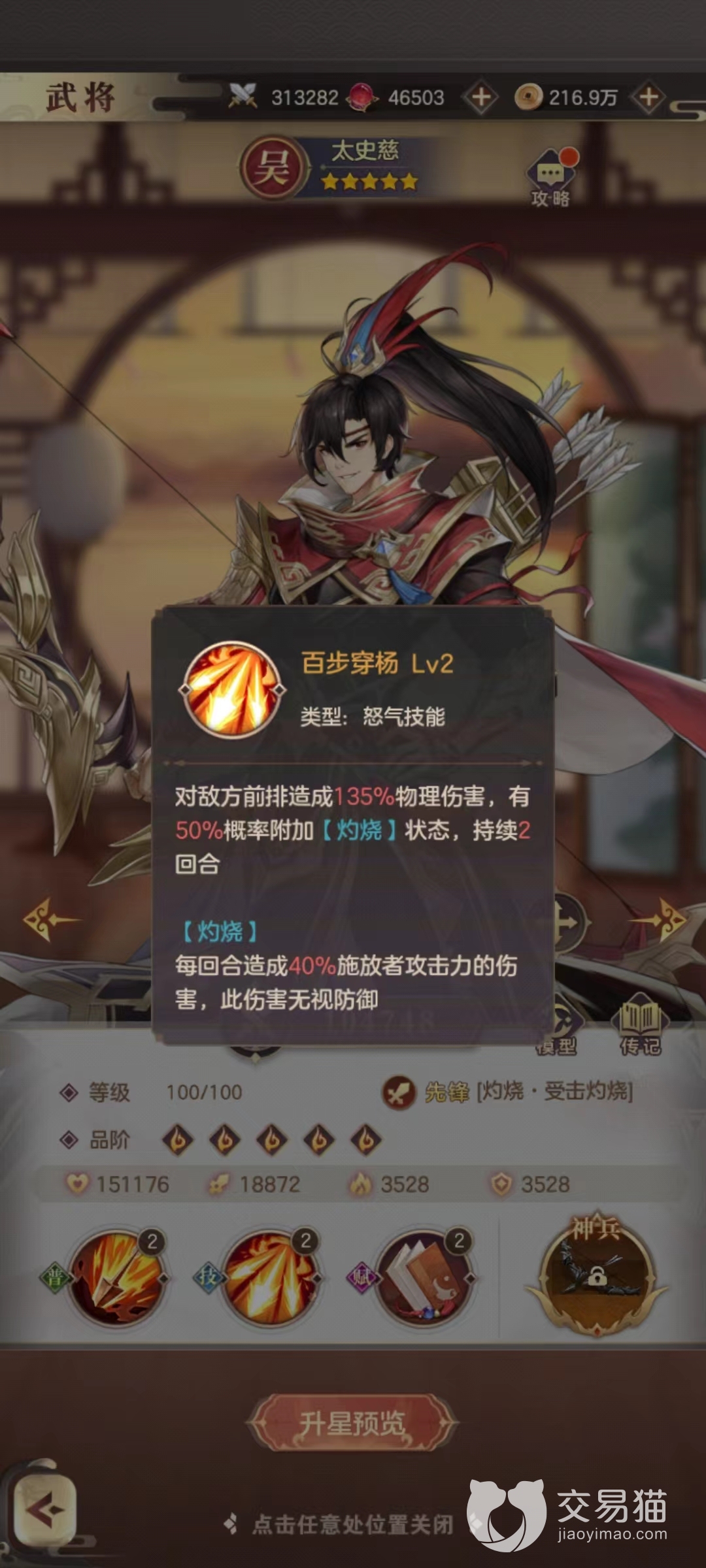赵云是当前的明星武将,从开荒到后期都能看到他的身影,使用怒气技能枪出如龙后伤害敌方纵排,并且能够触发一次无视防御的附加伤害,技能使用后赵云自身的爆率提高。在前面的简单战斗中获取还没有太好发挥,等到后期难度提高上来时,赵云就是阵容中的输出担当。太史慈主要的作用是利用技能百步穿杨来攻击敌方前排,不仅物理伤害高还有几率附加灼烧状态,太史慈的灼烧和周瑜的灼烧完全可以一起来作用,虽然不依赖灼烧伤害,但是可以为小乔提供便利。