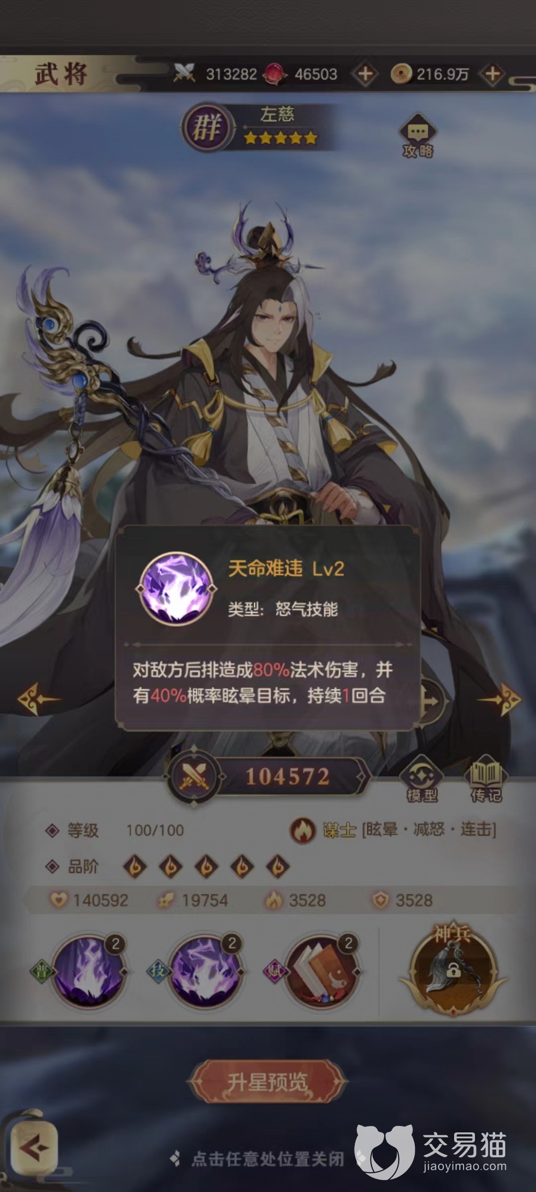 最后是左慈,他的技能天命难违可以伤害敌方后排,这样整个阵容就没有伤害死角,可以全方位的进行输出。而且整套阵容主要以吴国和群雄为主,在属性加成上也不会太低。