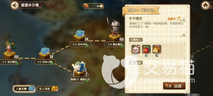 首先玩家需要的找到这一关的的位置,在第二章的最前端名字是榴莲农场,是重要角色榴莲夫人的地盘并且玩家第一次闯关会有写一小段剧情对主线没有任何影响。