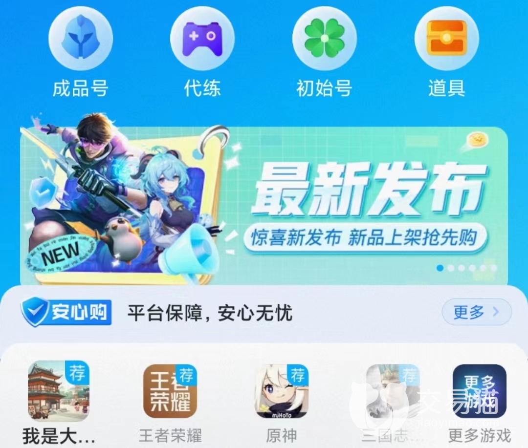这里小编本次为大家推荐的平台便是大名鼎鼎的交易猫,在这里你不但可以出售自己的账号,也可以为你即将进行游玩的手游购置一个品质优良的初始号帮你度过无聊的开荒期。且平台的安全保障也是数一数二的,让你无需担心卖家或者买家拿号就跑的坏习惯。这样你便可以收获一份相当于之前为了自己的账号操劳而得来的报酬,去买一些自己想要的东西。