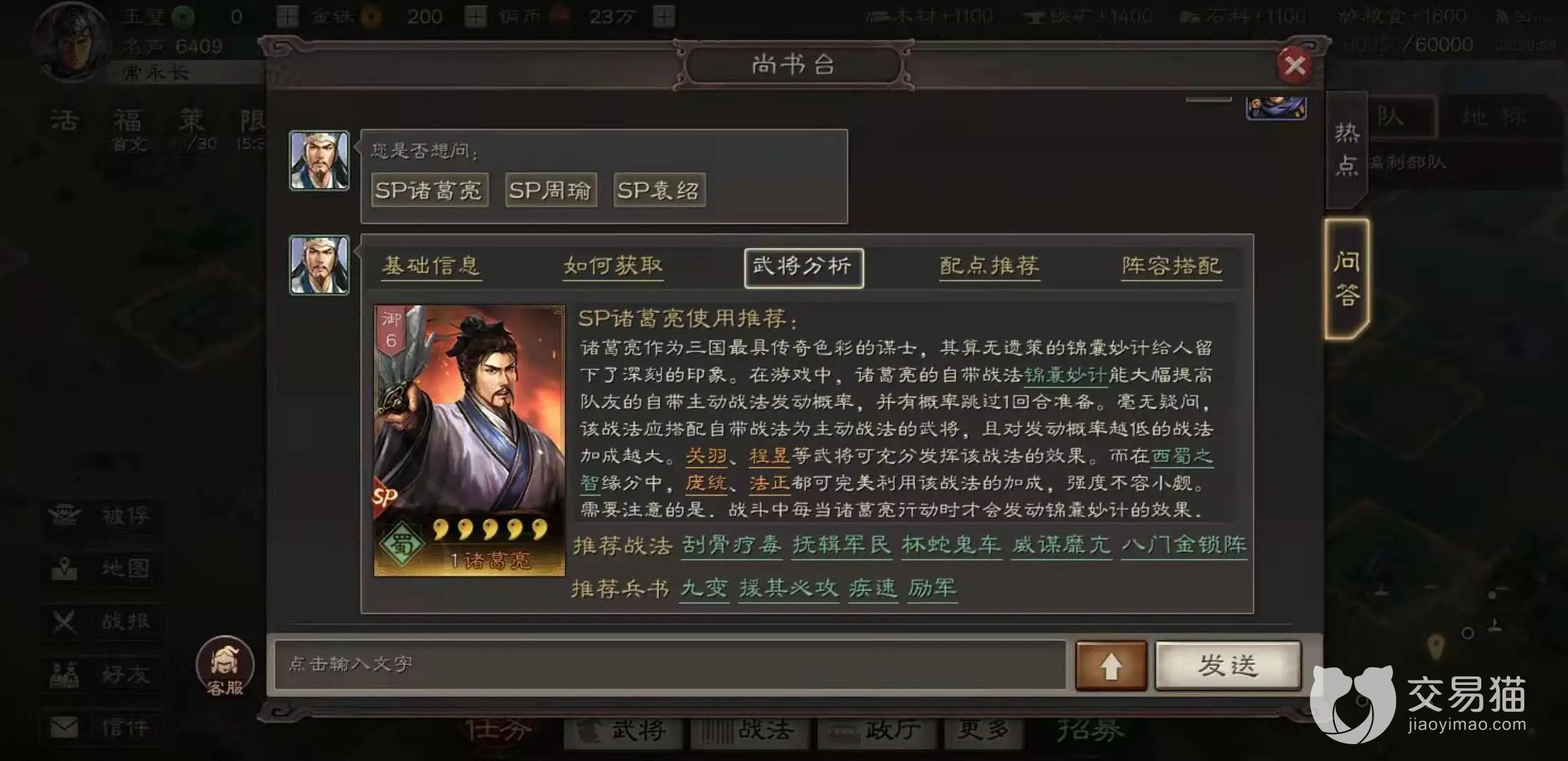 以上就是三国志战略版sp诸葛亮的相关介绍,sp诸葛亮属于智慧型武将,它释放出不错的控制力,保持良好谋略。