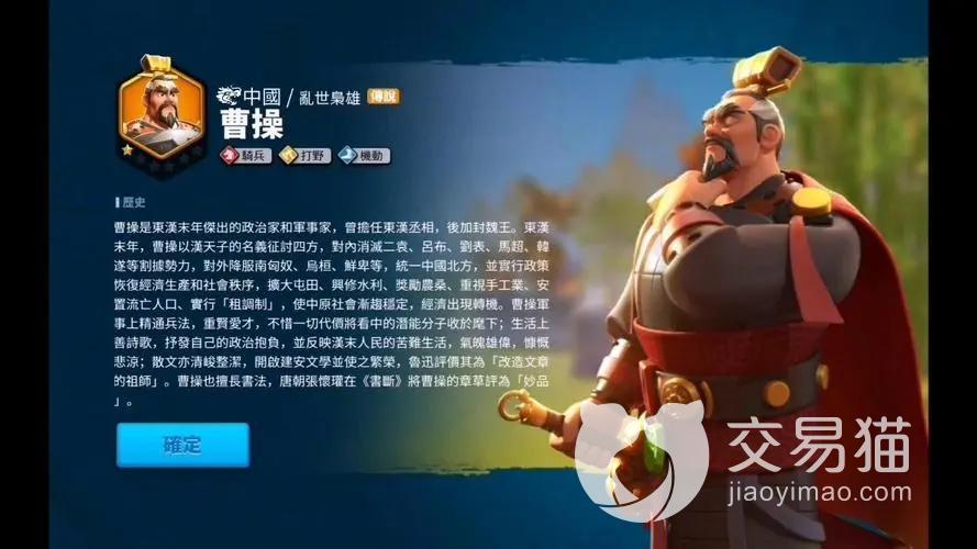 在武将搭配上,曹操选择方案很多,它可以同铁木真、佩拉约分别搭配。铁木真同曹操集合之后,铁木真攻击频率超高,曹操扼制对手攻击,快速打击对手。佩拉约和曹操组合好用,佩拉约属于紫色骑兵。