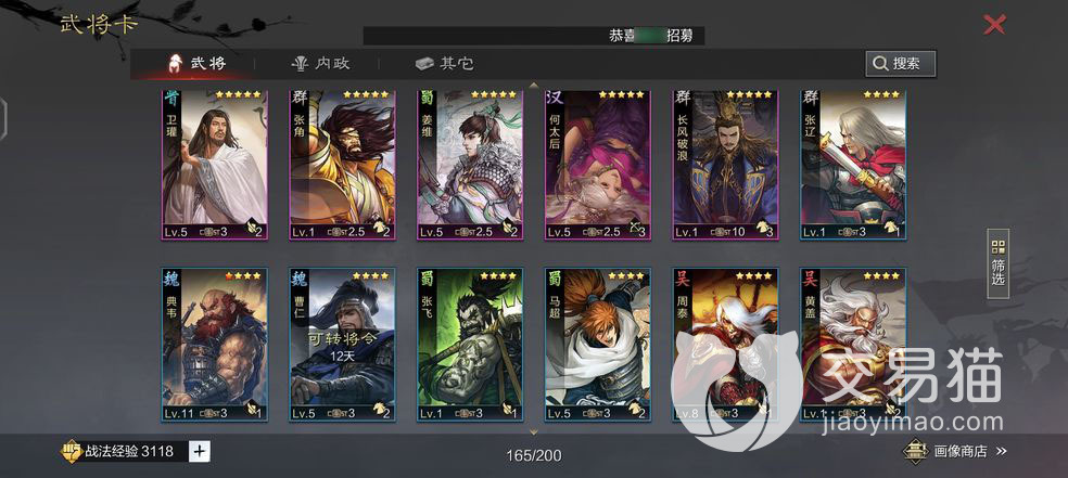 那么第一位就是晋代的开国皇帝司马炎,这个就有些来头了。他的主要贡献为逼迫魏元帝退位,建立了晋朝,无为而治恢复了三国之后各地百姓生活,让民众休养生息。游戏中给他的级别也是五星,希望可以有个不错的表现吧。