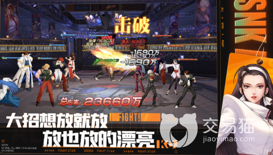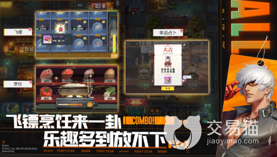 关于游戏的可玩性,对玩家来说最直观的体验就是丰富的人物选择和技能种类,本作完美复刻了SNK系列的各种人物角色,并且将我们熟悉的街机上角色的技能进行了完美的还原和更新,数十种不同的角色以及他们之间的羁绊使得你的阵容搭配有着无数种新奇的组合,在不断解锁人物的过程中会一直带来新鲜感,玩多久都不会腻!