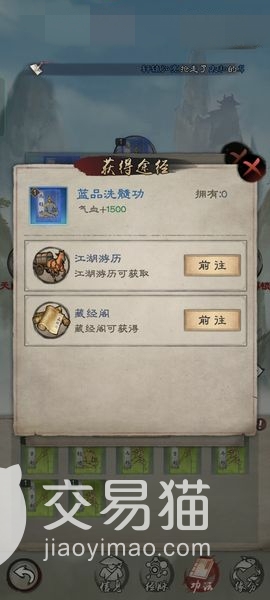 想要获取这一道具,可以抽取或者江湖游历的闯关模式随机给玩家,随着难度越高获得的品质越高,抽奖的话在藏经阁的界面内,玩家可以消耗铜币也就是游戏货币获取,还能选择元宝相当于氪金道具来换取,当然后者的高品质的功法更加容易获得,抽不中还能用抽奖赠送道具在兑换商店换取。