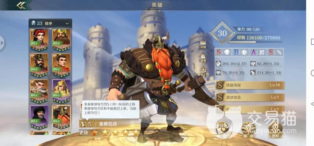 英雄们搭配不同技能,精妙组合比较极端。铁木真搭配契形骑兵阵和野蛮战吼,强化补刀效果,针对残血的对手,快速收割,它自带技能带有连击和单体攻击。萨拉丁搭配乌尔班射石炮和高卢野蛮冲锋,突进技能触发概率很高,同时一技能诺曼叠连击,发起野蛮进攻。腓特烈搭配神罗双酬骑兵和诺曼征服,一方面攻击爆发高,一方面突击技能释放概率高。
