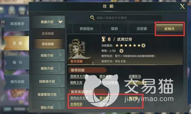 天盾兵队由亚历山大大帝、武则天、织田信长三位组成,各司其职,一方面保证生存续航,一方面打出超高攻击。武则天作为阵容中辅助角色,它日月当空技能拥有恢复血量和降低敌人各项属性,克制爆发高的队伍。织田信长拥有消除负面状态效果,打出高额攻击。亚历山大大帝攻守效果都不错,充当阵容肉盾。
