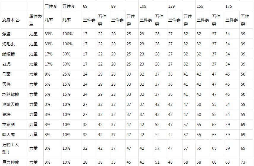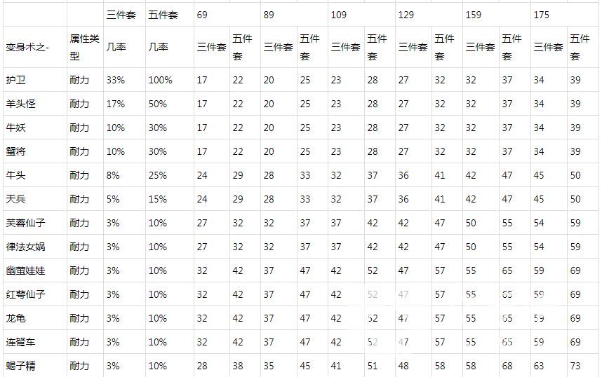 给大家分享的动物套属性加成表里面可以清晰的看到巨蛙套的3~5件触发百分比非常高,但也仅限于为人物增加魔力属性;体质套装的大海龟也是众多玩家的首选,如果能在游戏里面拥有一套109级的大龙龟简直不要太无敌,如果说五种属性哪种属性性价比最高,那一定是体质,另外力量套最强的是强盗和海毛虫,敏捷套是赌徒和大蝙蝠。