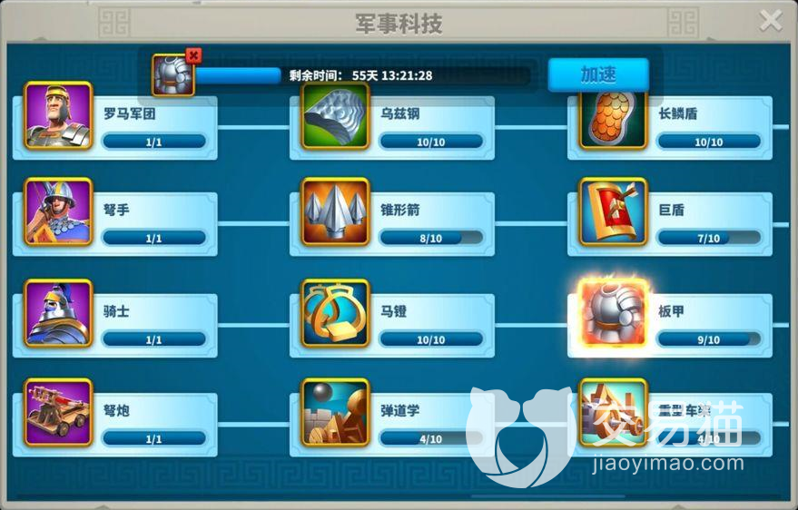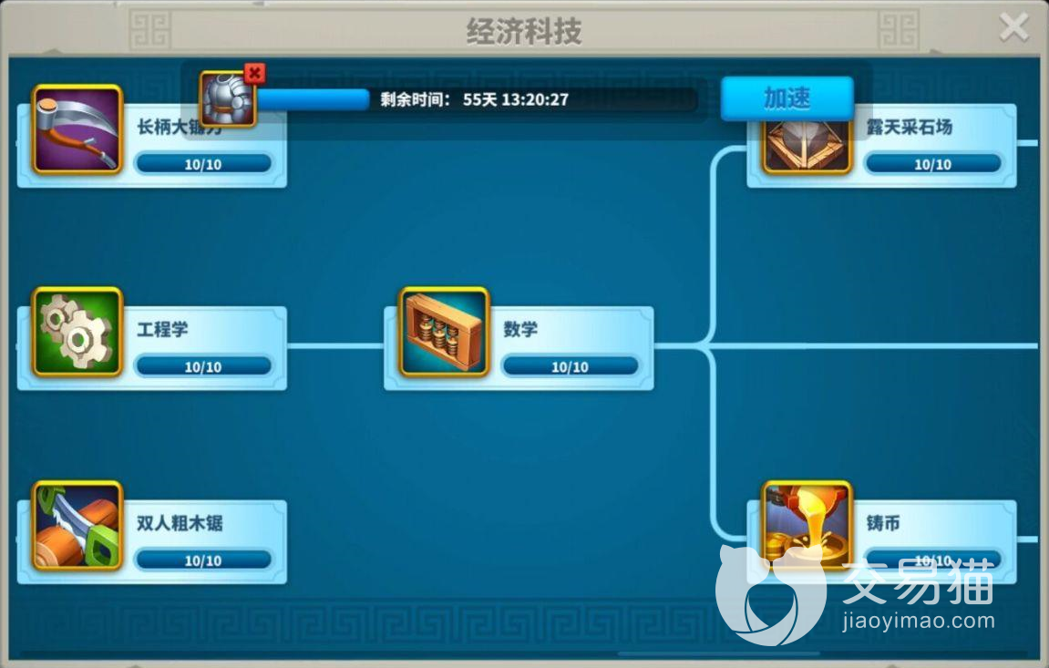 3、农业科技:农业科技科技则是需要全满的,不过农业科技需要的加速不算太多,最长的也就只有十来天的样子。