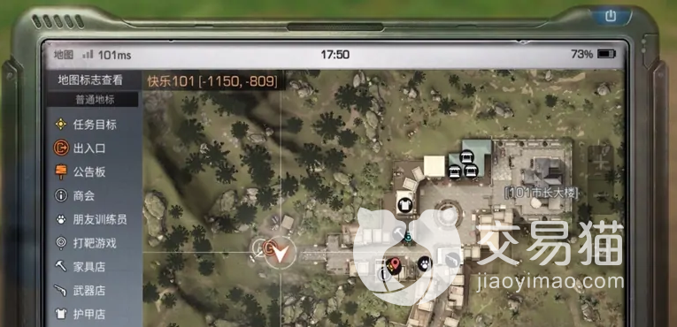 首先登录游戏之后来到营地的市中心,在这里可以搭乘直升机,我们需要乘坐直升机前往快乐101。到达指定地图后打开小地图,从左侧地图标志查看中找到商会选项,然后跟着标记一路来到商会大厅后。进入门口就能发现。