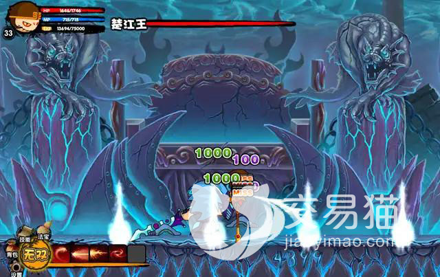 这一关卡拥有几位BOSS,玩家在场景中,首先发觉妖怪下方的圆盘,打中这一圆盘之后,先击败一位BOSS之后,再对抗另外一位BOSS。在阵容组合上,玩家使用孙悟空,搭配法宝血海魔童、五毒兽,如此一来,它能够打出同时攻击,敲击圆盘两边的柱子,等待一会儿,恶魔墙壁嘴脸撕开,门缓慢打开,里面投射出金光。悟空进入击败BOSS。