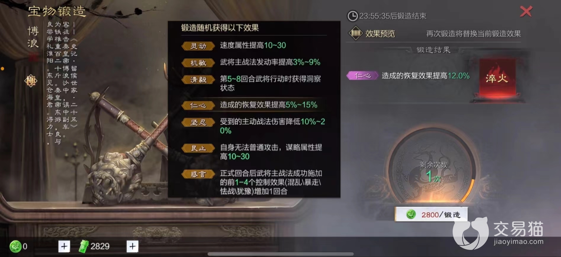 游戏中除了打造以外,玩家获取到稀世宝物可使用锻造的方法来获取。锻造的稀世宝物属性随机,玩家拥有其次重铸的机会。