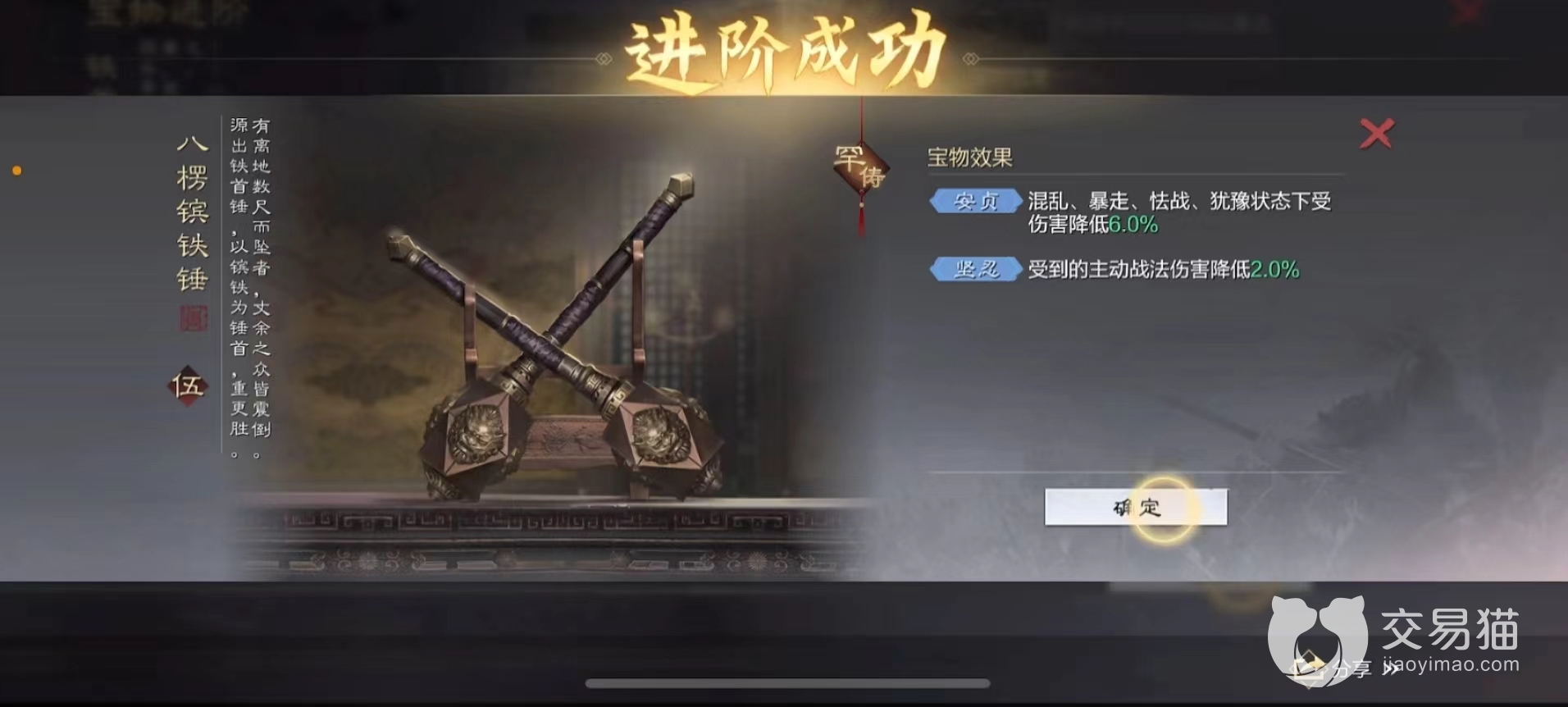 玩家可消耗一定的材料进行强化打造,提升打造出精品的概率。比精品宝物属性还高的是罕俦宝物,并且这两中宝物支持进阶,同时佩戴的武将也有等级要求。