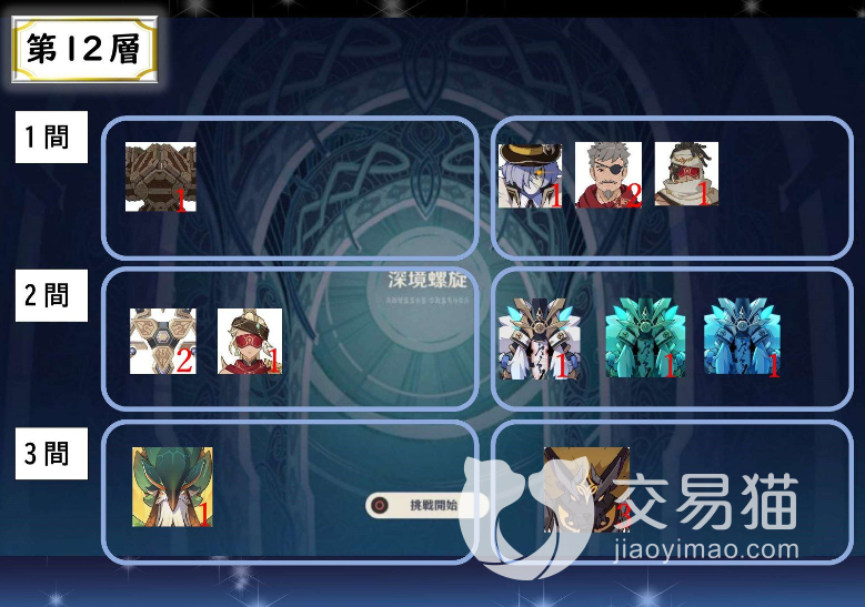 十二层具体的怪物分配小编就用图片来表示了,数字代表个数,总的来说似乎这一层的上半大怪多余下半,所以可能将对单放队伍放在上半会好一点。